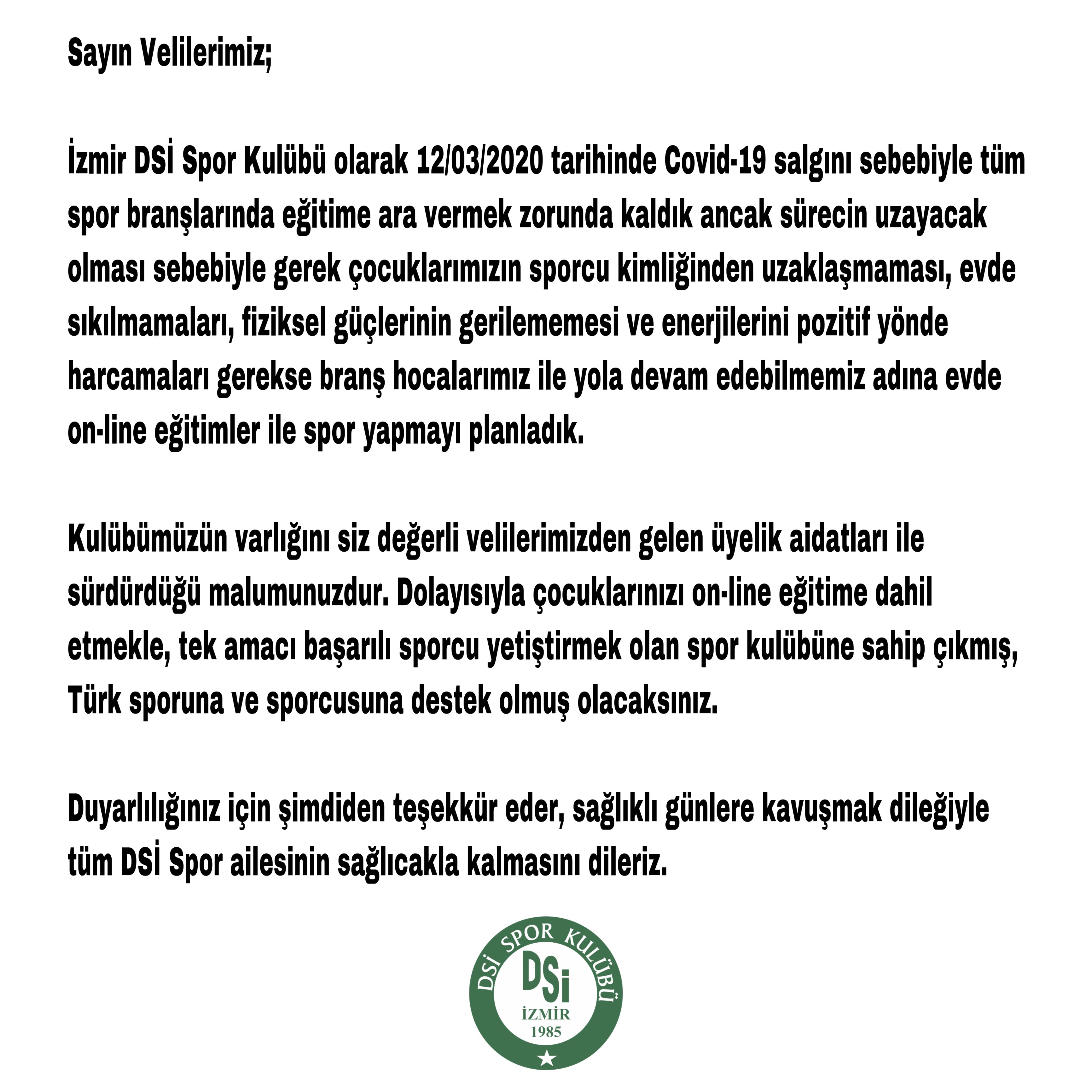 İzmir DSİ Spor Kulübümüzün 33.Olağan Genel Kurulu 10.06.2025 Salı günü saat 13:30'da yapılmasına, yeterli çoğunluk sağlanamadığı takdirde 18.06.2025 Çarşamba günü saat 13:30 da basketbol...